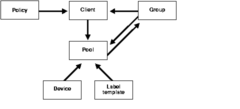 Figure 2-1 shows the dependencies between the LSM resources. The resources with outgoing arrows are both independent resources themselves and attributes of the resources where the arrows end.
