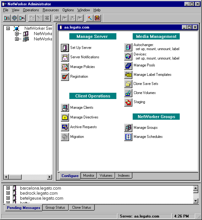As explained in the "Overview of LSM Features" , the LSM Administrator GUI is the graphical user interface for connecting to and configuring the LSM Server and its attached Oracle storage devices and volumes. You can also use the LSM Administrator GUI to monitor the status of Oracle backup and restore operations as well as the status of Oracle backup volumes and the backup sets stored on them.