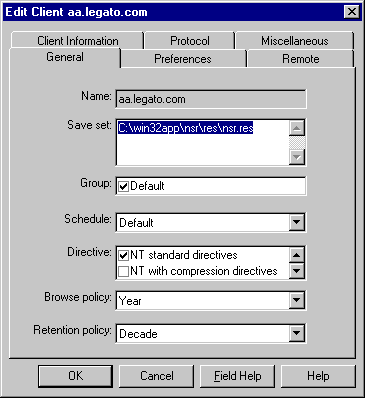 The Edit Client dialog box on a Windows system, listing all the attributes of the client resource, appears as shown in Figure 2-4.